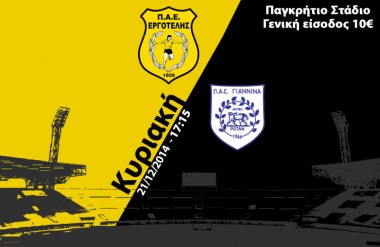 Εν όψει του αγώνα της 16ης αγωνιστικής της Super League με τον ΠΑΣ Γιάννινα, που θα διεξαχθεί στο Παγκρήτιο Στάδιο την Κυριακή 21/12/2014 στις 17:15, η…