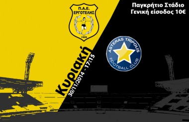 Εν όψει του αγώνα της 12ης αγωνιστικής της Super League με τον Αστέρα Τρίπολης, που θα διεξαχθεί στο Παγκρήτιο Στάδιο την Κυριακή 30/11/2014 στις 17:15, η…